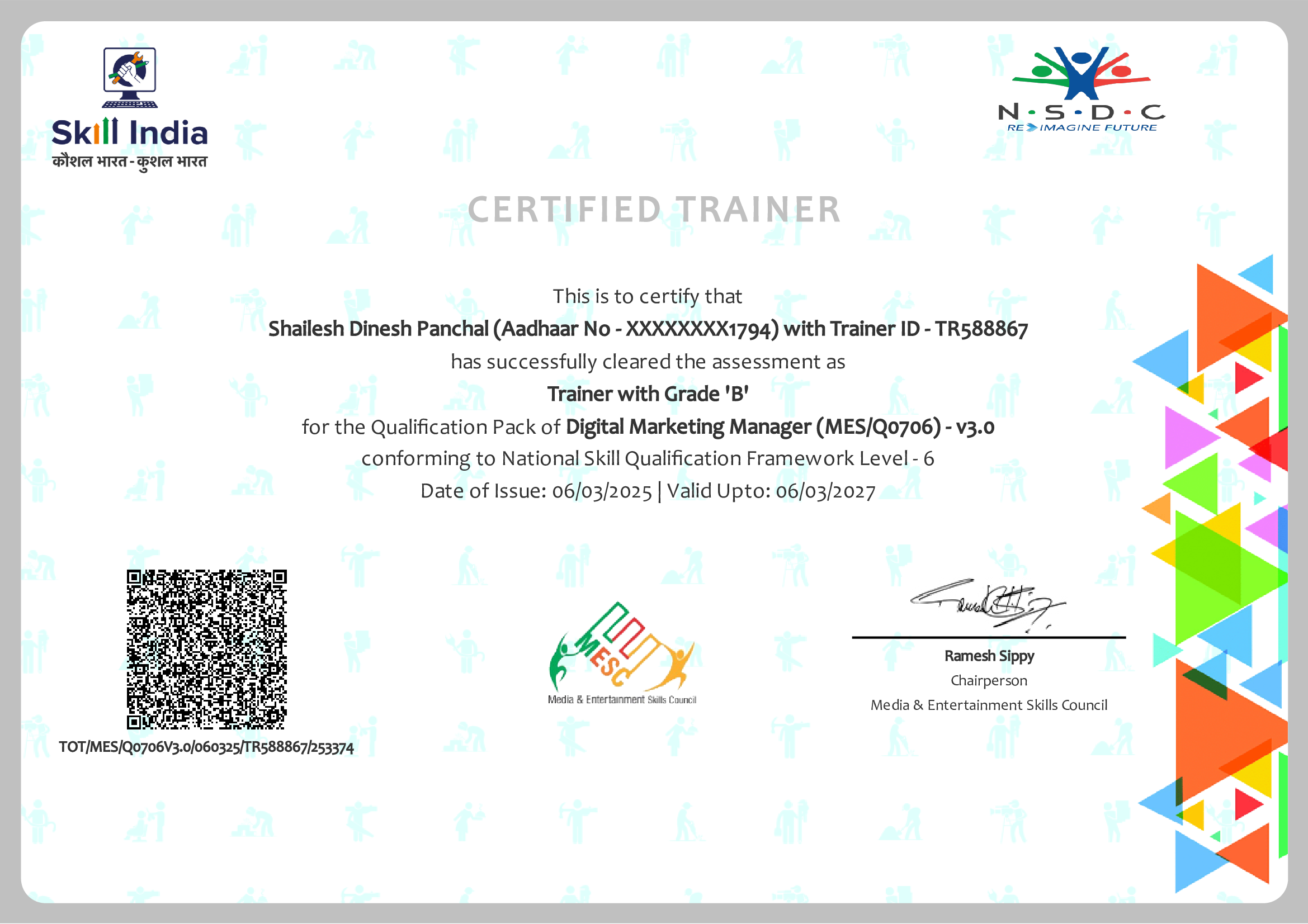 With 10 years of experience as a Performance Digital Marketing Trainer & Skill India Certified Digital Marketing Trainer & Manager (since 2025).
